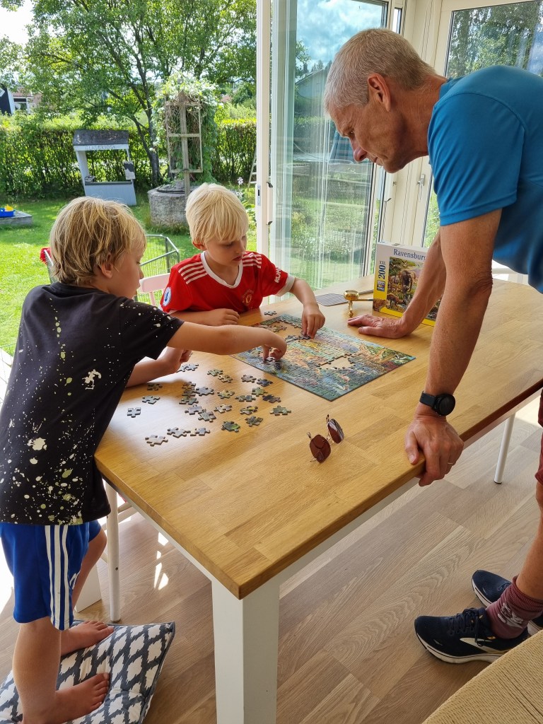 Under sommarlovet har vi förstås umgåtts mycket med småttingarna. Här spelar vi minigolf. Det tyckte de var jätteroligt. Jag hade trillat dagen innan och landat på opererade foten så jag fick sitta och titta på. Kunde knappt gå.