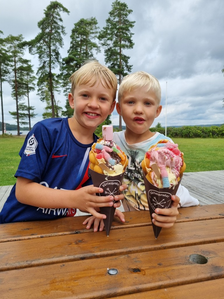 De fick välja stor glass när de var med oss och vi trodde knappt de skulle få i sig all glass men det fick de 🙂